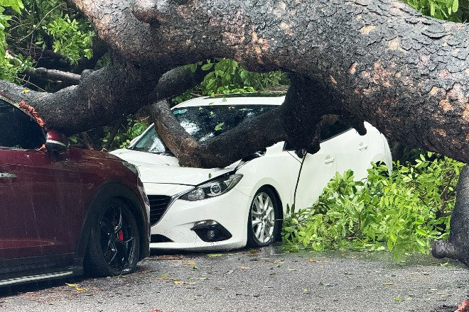 Sau tiếng động lớn, cây cổ thụ bật gốc đè bẹp hai ô tô ở Hà NộiSáng sớm 27/8, một cây cổ thụ lớn bất ngờ bị bật gốc đè trúng 2 ô tô đang dừng đỗ tại ngõ 1 phố Trung Kính (Hà Nội).