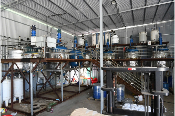 Cuối tháng 1, khi nhà xưởng xây lắp xong, các đối tượng chuyển nguyên vật liệu, hóa chất và bắt tay vào sản xuất ra khoảng 1,8 tấn bột màu vàng, đóng vào 27 thùng xốp, sau đó gửi vào kho đông lạnh ở Nha Trang.