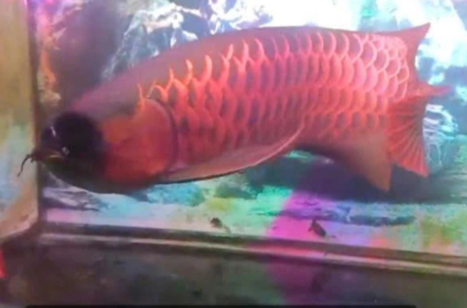 Bình dùng vợt bắt trộm một con cá huyết long trị giá 60 triệu đồng, bỏ vào túi nilon rồi rời khỏi cửa tiệm.