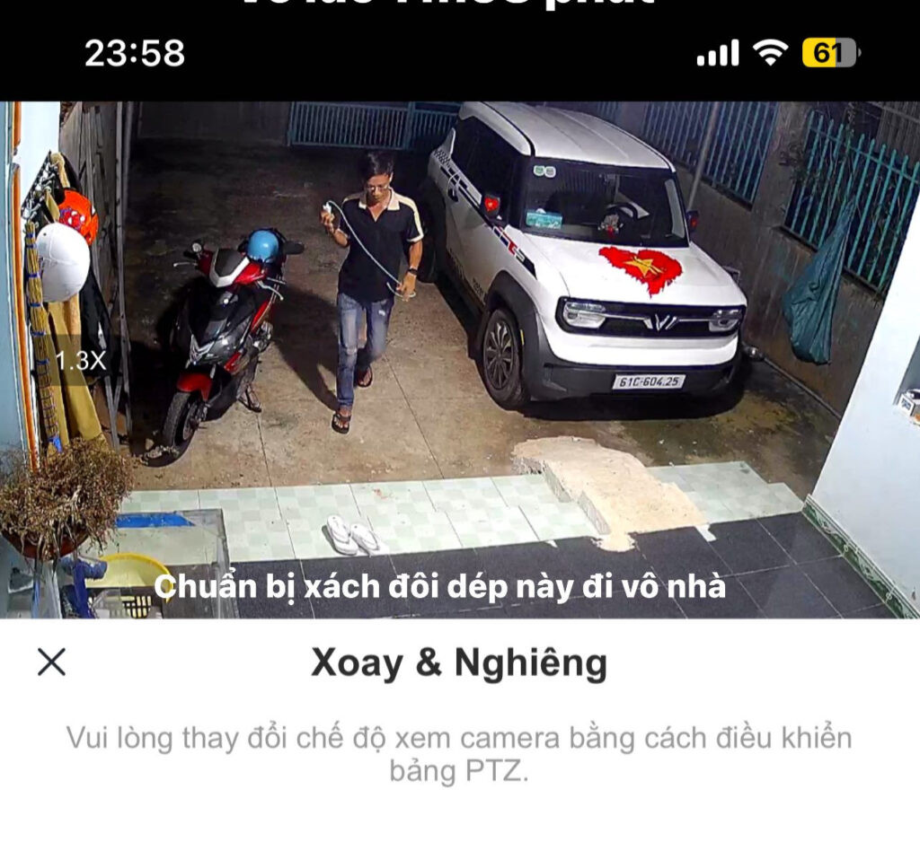 Đến 1h sáng, người vợ trở về, gọi chồng ra “nói chuyện rõ ràng”. Camera an ninh tại hiện trường đã ghi lại cảnh người đàn ông bước vào sân, tay cầm đôi dép, chuẩn bị vào nhà.