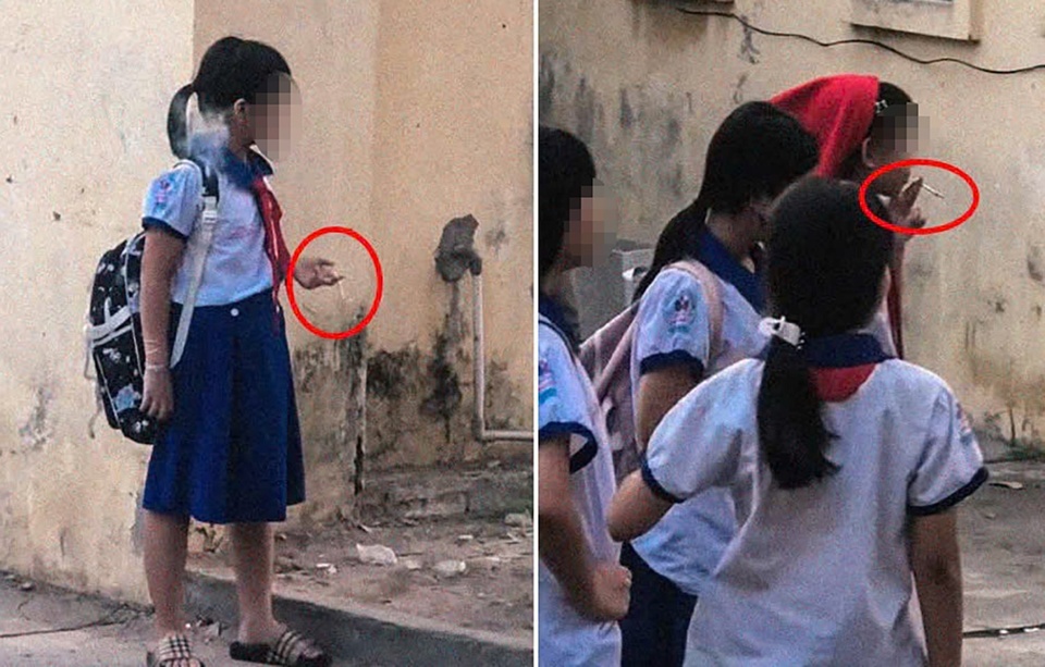 Như VietNamNet đã đưa tin, những ngày qua, mạng xã hội lan truyền clip gần một phút ghi lại cảnh 5 nữ sinh mặc đồng phục đang hút thuốc lá. Nhóm nữ sinh còn đưa thuốc lá “mời” một bạn nam cùng hút. Clip sau khi đăng tải nhận về nhiều ý kiến bày tỏ lo lắng, nhất là khi những học sinh này còn ở bậc tiểu học.