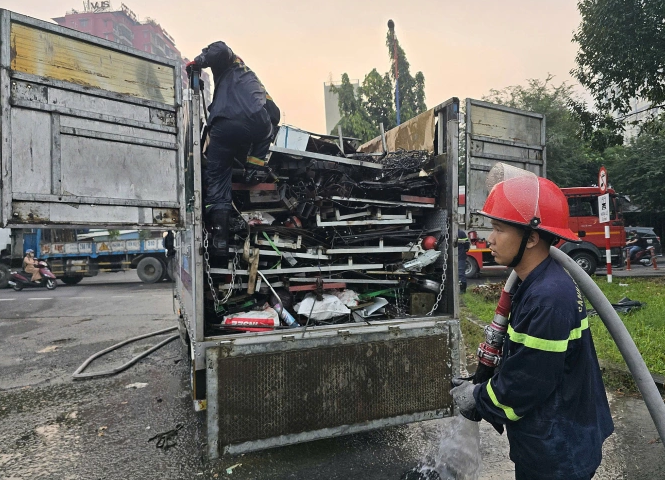 Thấy lửa bùng phát từ thùng hàng chở pin phế liệu, tài xế lái xe...