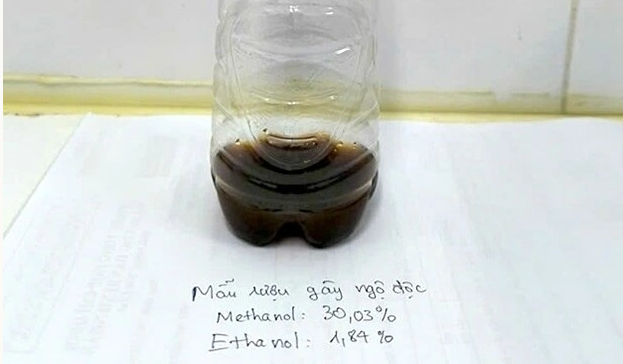 Mẫu rượu chứa 30,3% methanol (cồn công nghiệp) và chỉ 1,84% ethanol, được xác định...